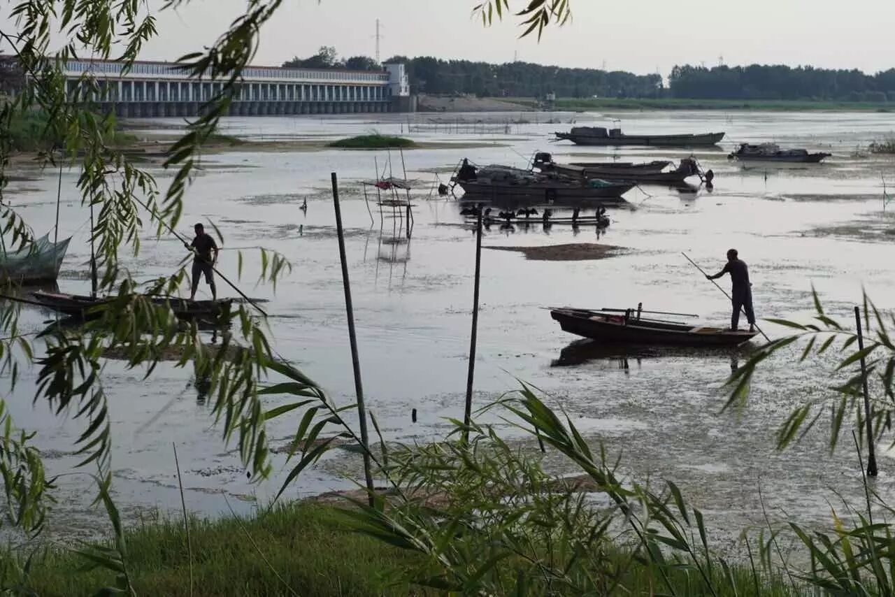 拍完枕水人家,今天的重头戏要来了,一行人表兴奋的驱车前往微山湖边拍摄鱼鹰表演。远远地,便看见一个个载着鱼鹰的船队在鱼多的大湖,进行着一天的劳作。